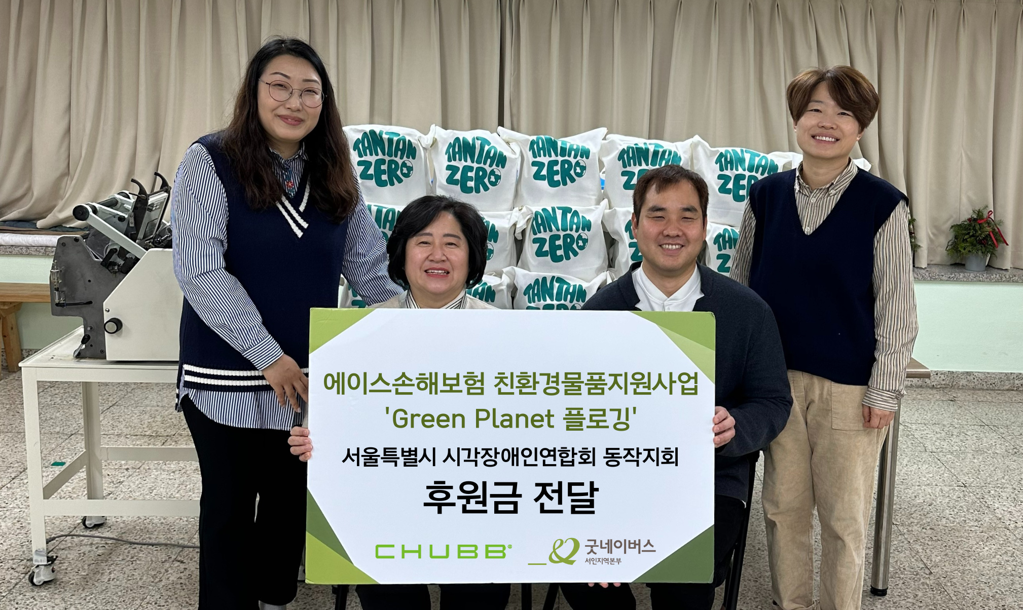 (사)서울특별시 시각장애인연합회 동작지회는 굿네이버스 서인지역본부의 지원을 통해 에이스손해보험에서 친환경물품지원사업 후원물품을 전달받았다. 후원물품은 자동 점자명함기와 친환경물품 키트로 키트는 실생활에서 사용할 수 있는 고체세탁세제, 양치세트, 텀블러, 천연염색타월등으로 구성되어있다. 동작지회는 굿네이버스와 협업하여 구성한 친환경키트를 동작구에 있는 시각장애인을 대상으로 배포할 예정이다.