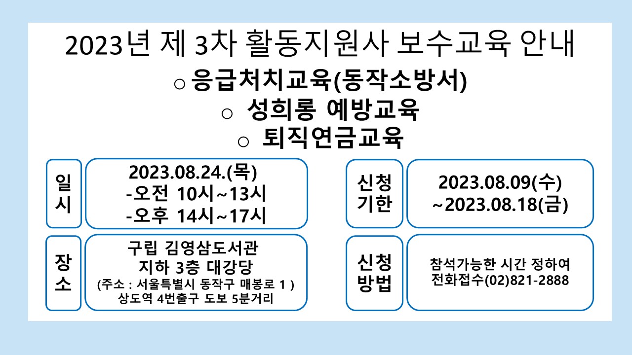 2023년 제 3차 활동지원사 보수교육 안내